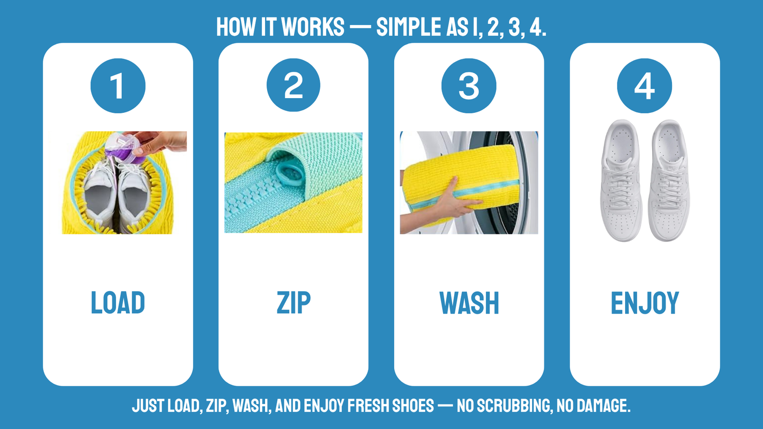 Just load, zip, wash, and enjoy fresh shoes — no scrubbing, no damage.